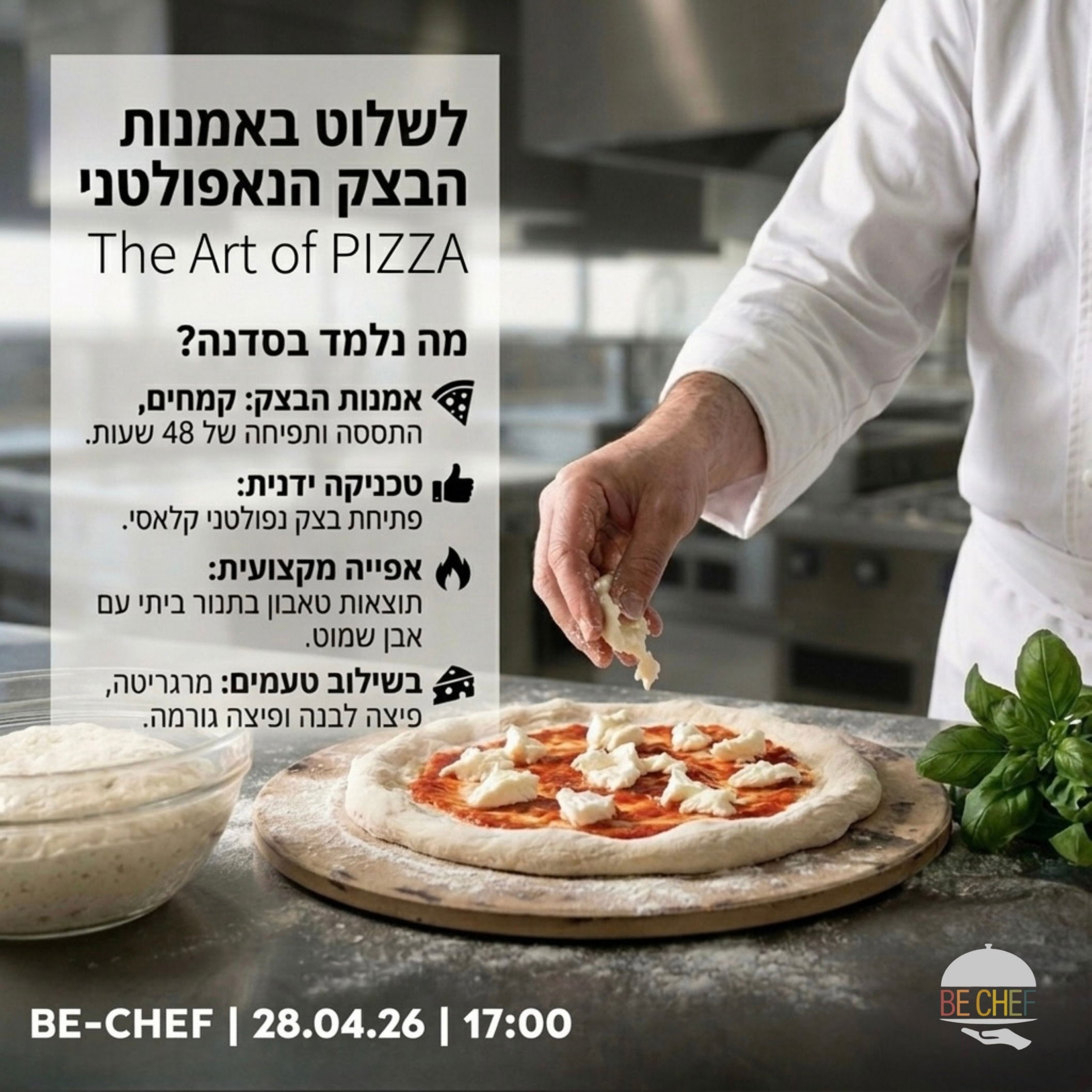 48 שעות של התפחה, בצק נפוליטני אמיתי ויין איטלקי משובח. בואו ללמוד את המדע שמאחורי הפיצה המושלמת בסדנה חווייתית ומקצועית.